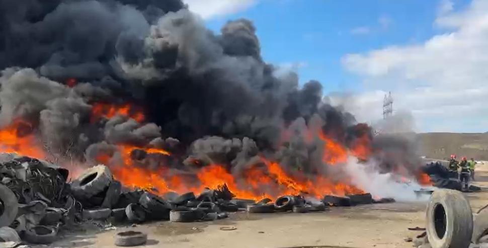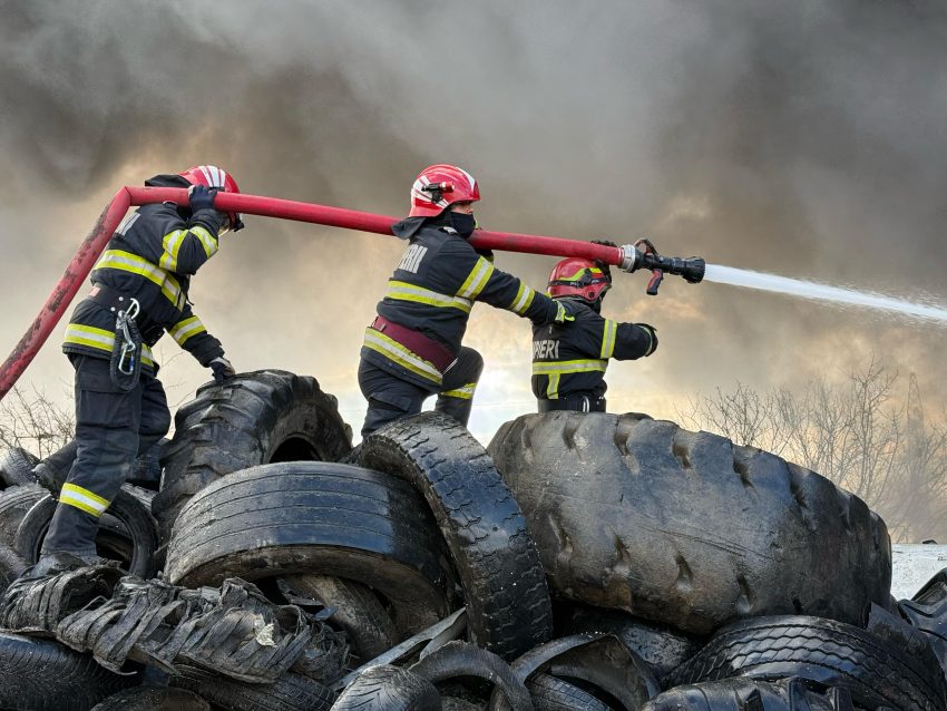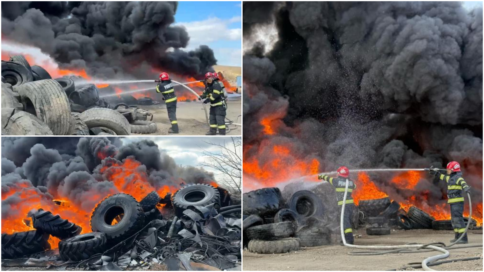Pompierii au intervenit de urgență la incendiul care a cuprins sute de metri pătrați. Au ars anvelopele uzate de la depozitul la care a izbucnit focul.