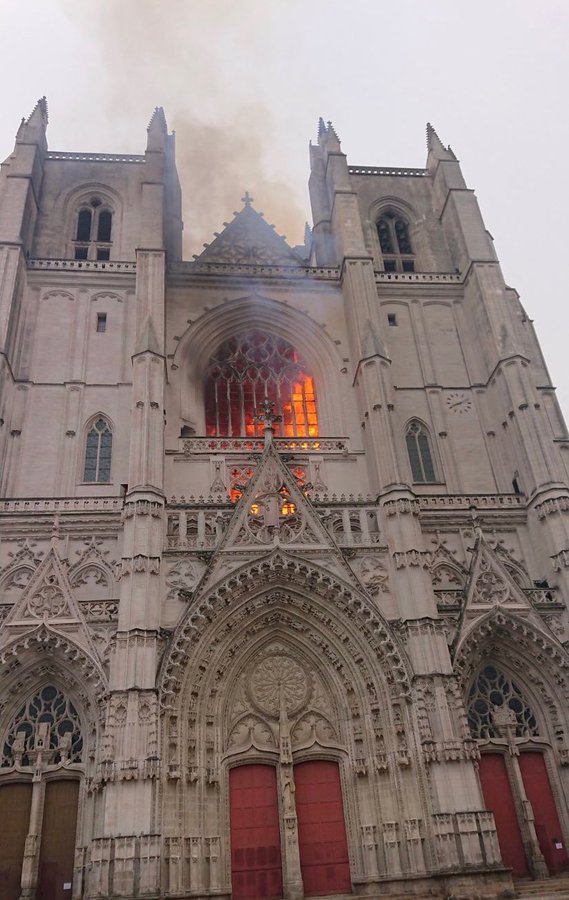 Catedrala Sf. Petru și Pavel din Nantes a fost distrusă parțial de flăcări, potrivit presei franceze. Mai multe mașini de pompieri s-au luptat să țină focul sub control. Flăcările au spart vitraliile catedralei şi au distrus marea orgă a clădirii din secolul XV. Piatra de temelie a catedralei din Nantes a fost pusă în 1434 și a durat 457 de ani pentru a fi finalizată.