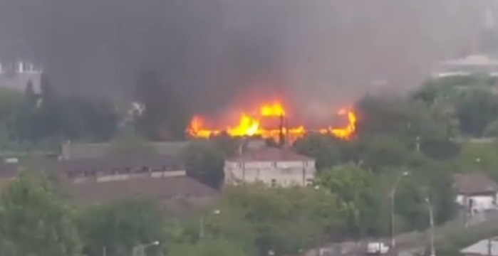La ora transmiterii acestei ştiri, pompierii intervin pentru stingerea incendiului cu şase autospeciale şi o autoscară, existând pericol de propagare a focului.