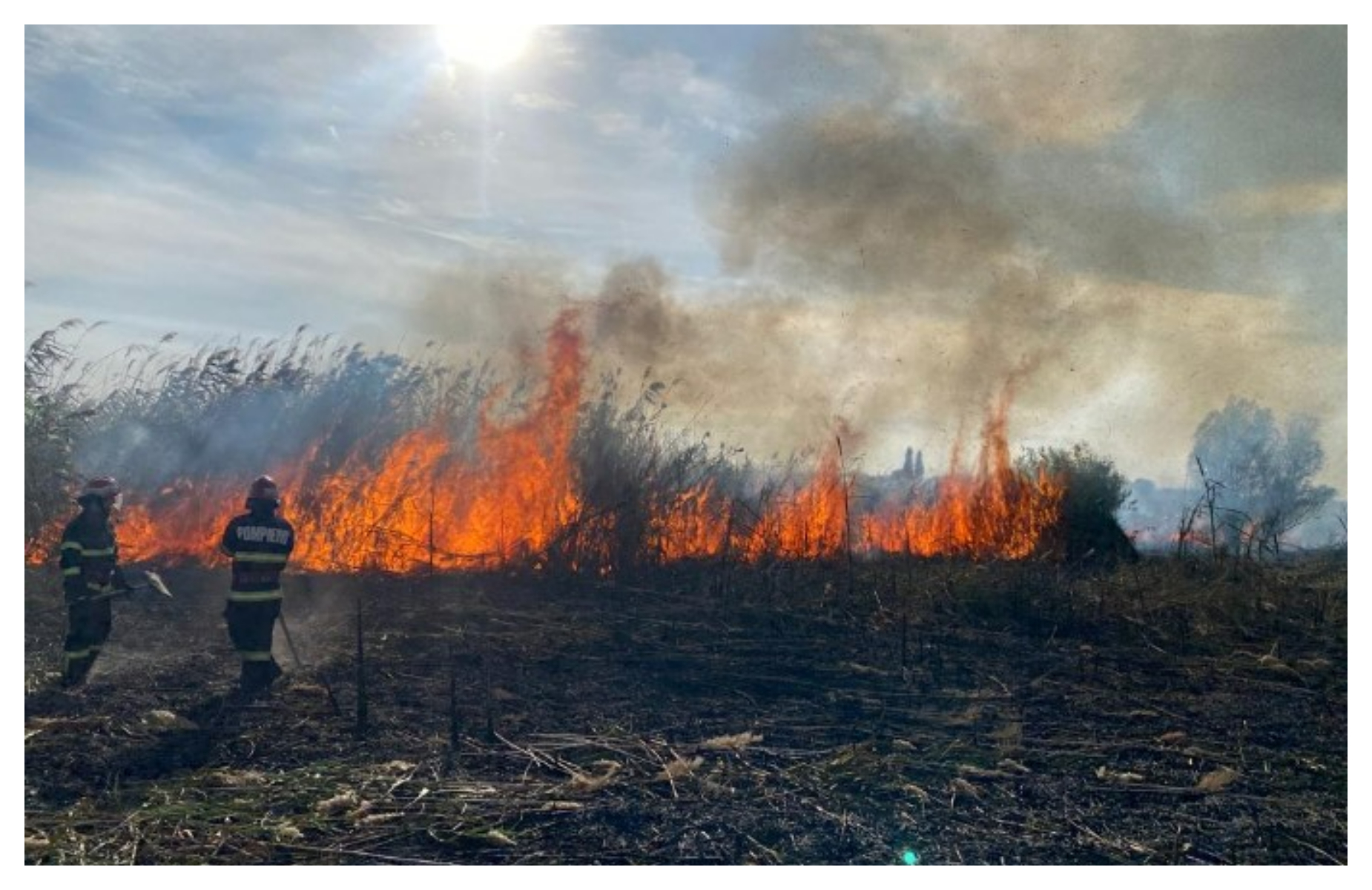 Un alt incendiu violent a izbucnit la începutul acestei luni, în Delta Neajlovului, într-o zonă în care stuful depăşeşte trei metri înălţime.