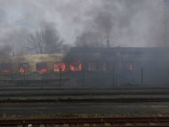 Incendiu in Gara de Nord din Timisoara, la un vagon de tren dezafectat; pompierii intervin cu cinci autospeciale