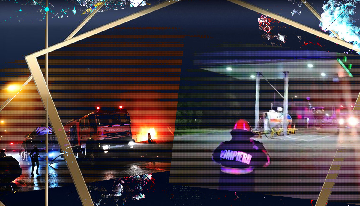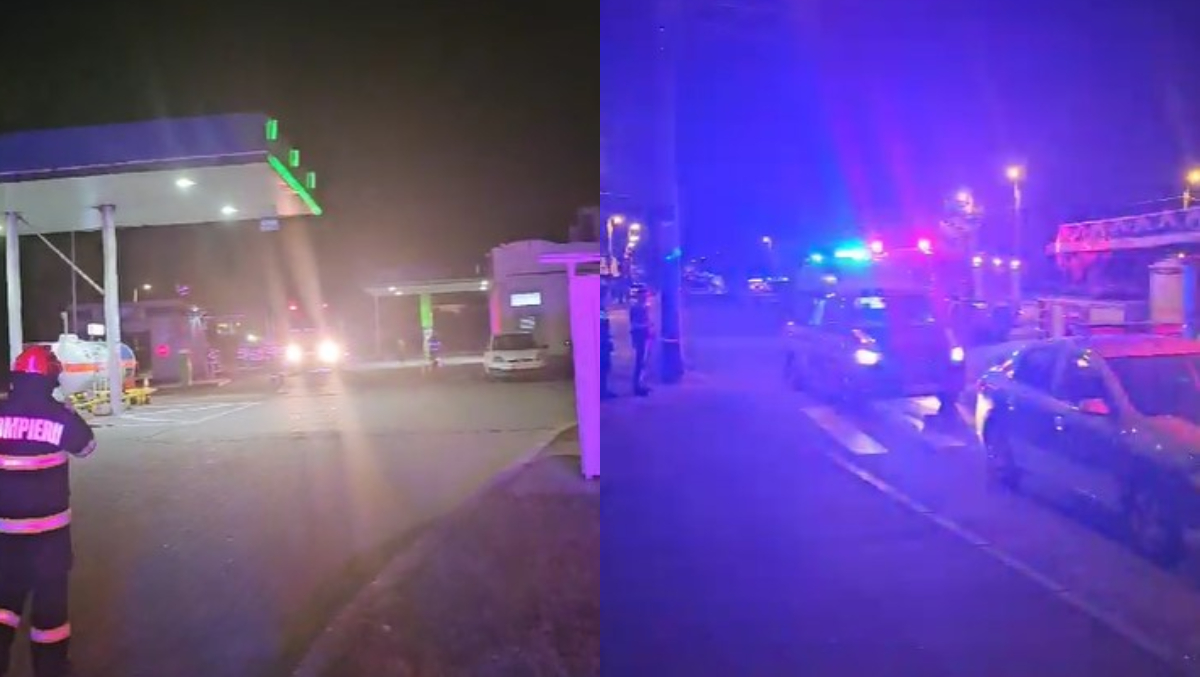 Incendiul a fost localizat, iar pompierii au delimitat zona pentru a nu permite accesul mașinilor în benzinărie.