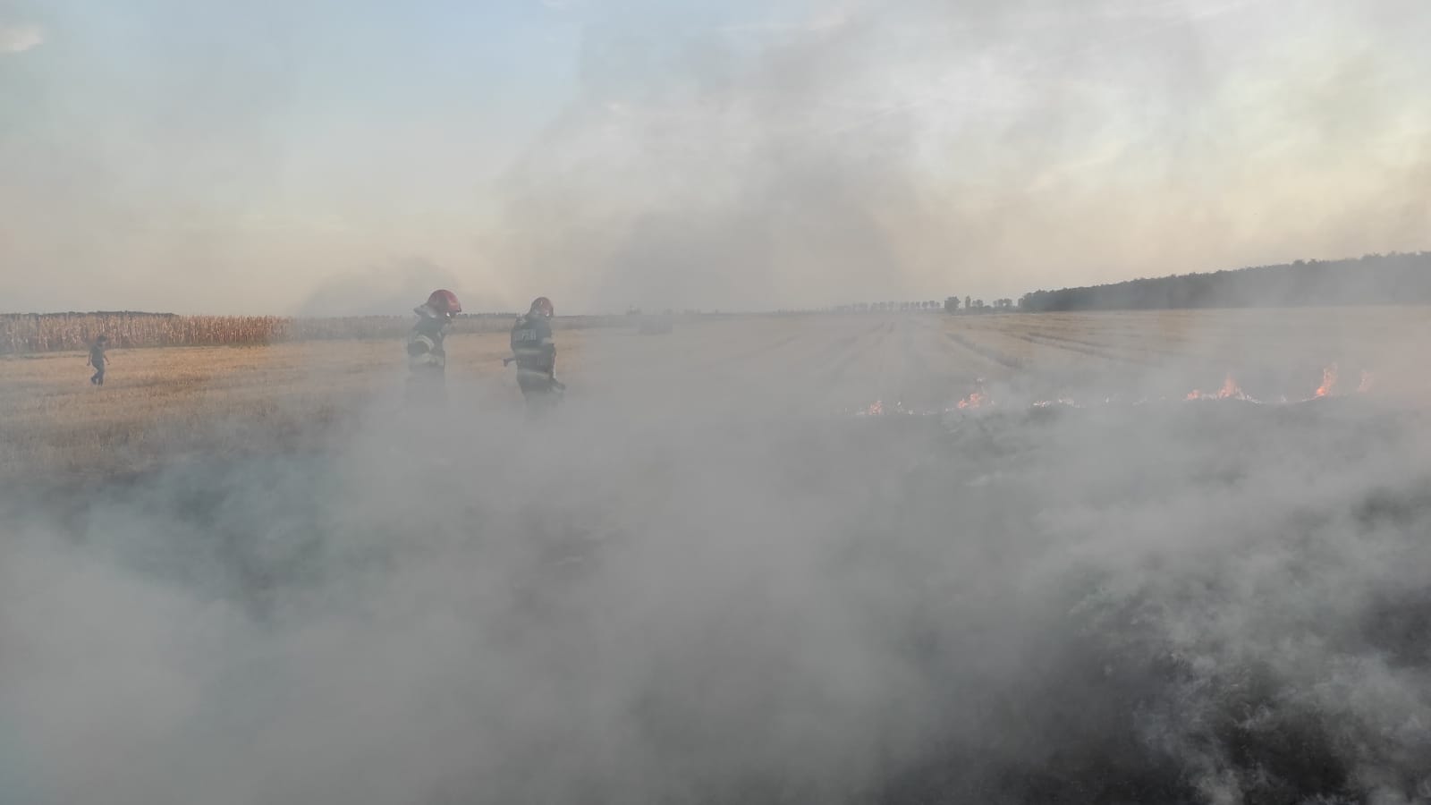 Incendiu pe un câmp de grâu și orz, întins pe zece hectare. Pompierii intervin pentru stingerea acestuia. Flăcările s-au extins cu repeziciune din cauza vântului. Patru autospeciale de stingere cu apă și spumă au intervenit la fața locului. Martorii spun că incendiul ar fi izbucnit de la o țigară aruncată la întâmplare pe câmp.