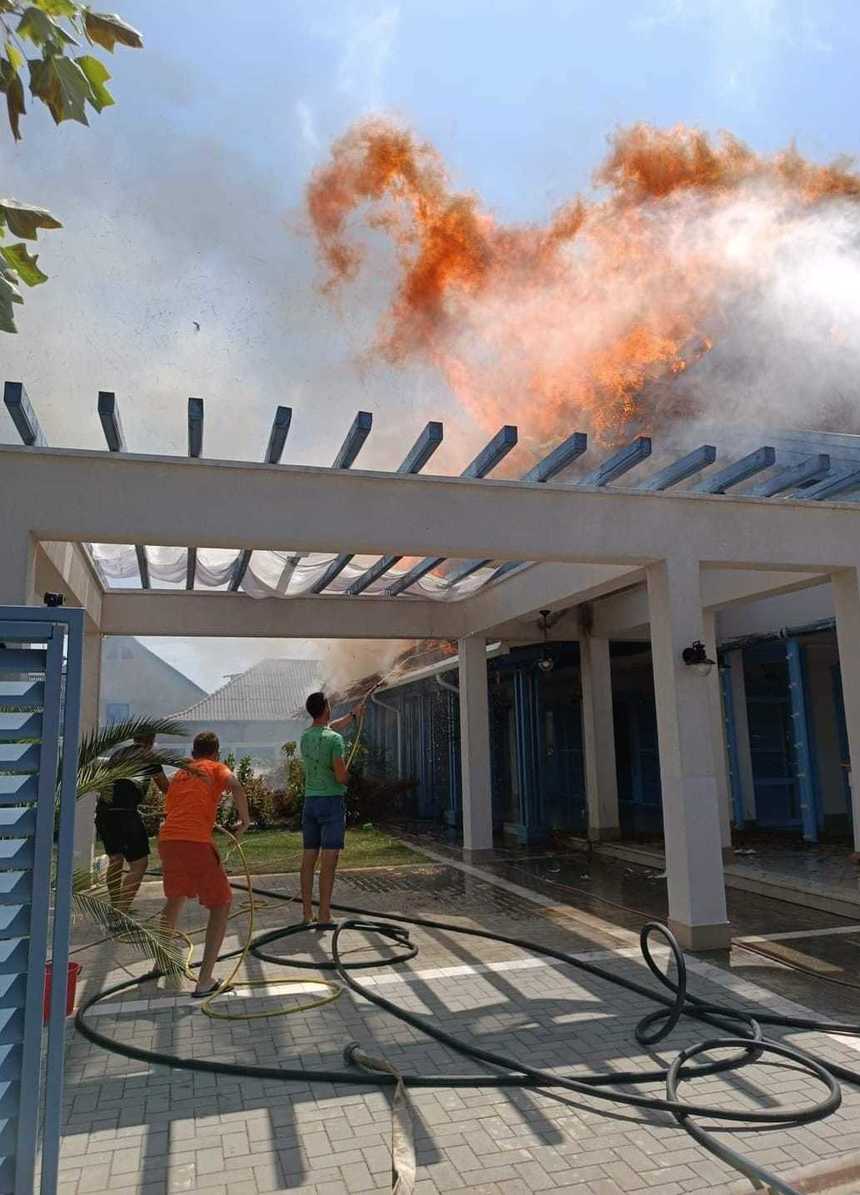 Incendiul a avut loc astăzi după orele prânzului pe acoperișul unei pensiuni din localitatea Sarichioi.
