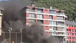 Stropitoarele de pe teren au fost folosite pentru a încerca să controleze focul înainte ca pompierii să sosească și să stingă flăcările. Jucătorii lui Gareth Southgate urmează să joace Andorra la ora 19:45 BST sâmbătă.