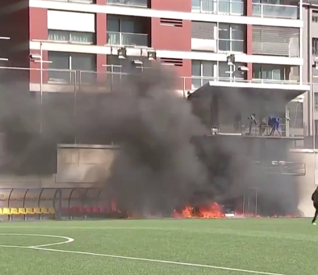 De asemenea, s-a topit monitorul video al arbitrului asistent, au rămas resturi pe o porțiune a terenului și s-a deteriorat o suprafață destul de mare a liniei de contact.