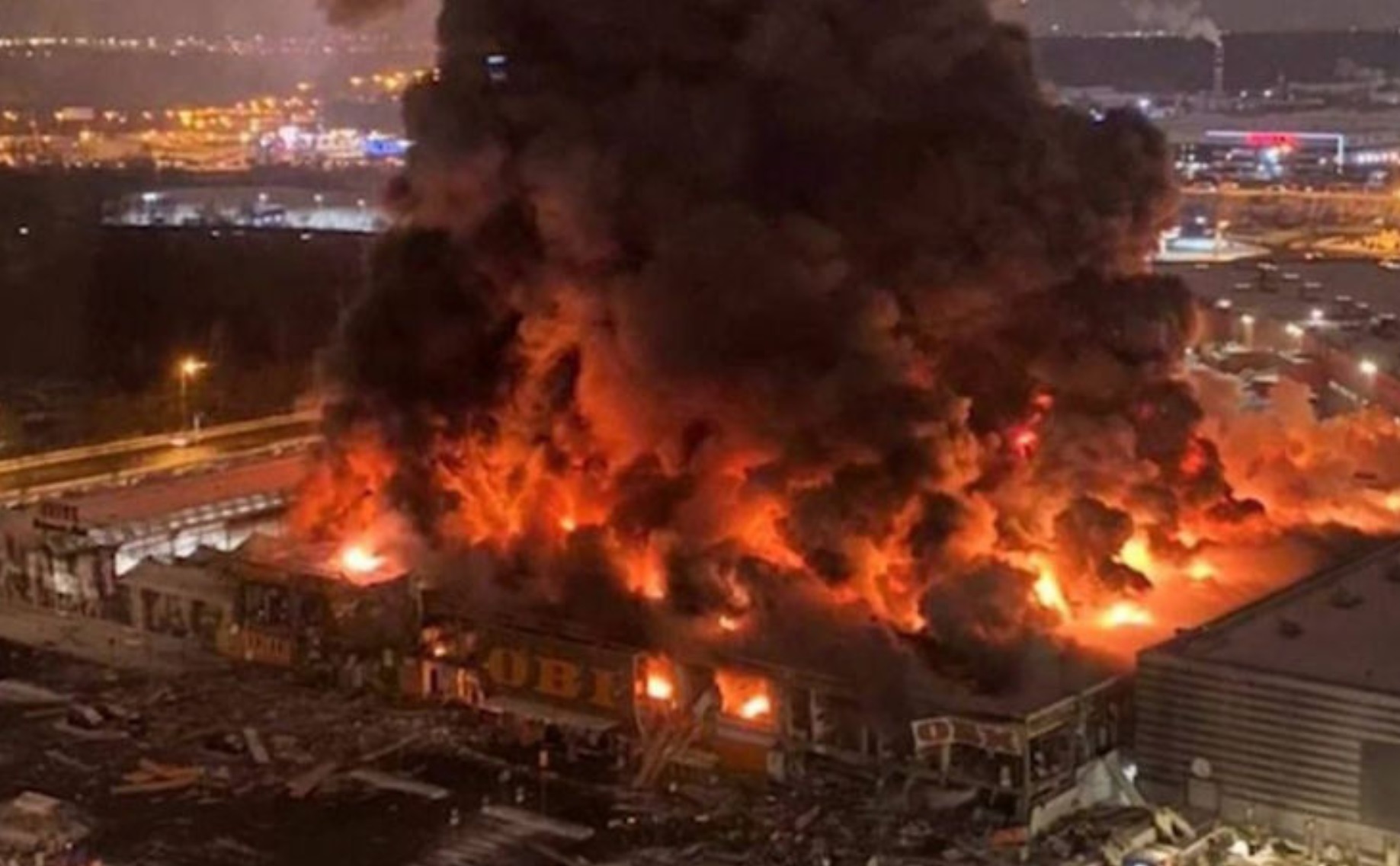 Reporterii agenției de presă TASS de la sol au spus că magazinul OBI a fost „aproape complet distrus”, doar pereții portanti rămânând în poziție verticală.