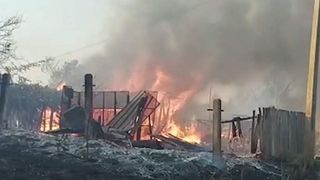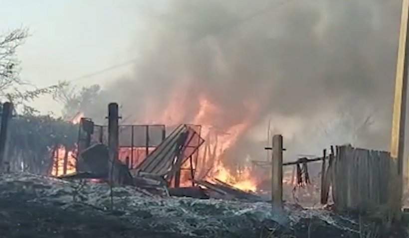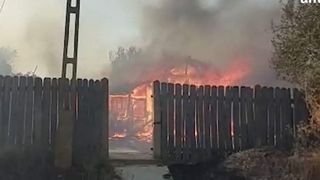 1 din 4 | Potrivit primelor informații, se pare că focul a pornit de la vegetația uscată, iar apoi s-a extins amenințător la mai multe gospodării.