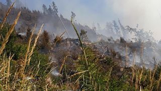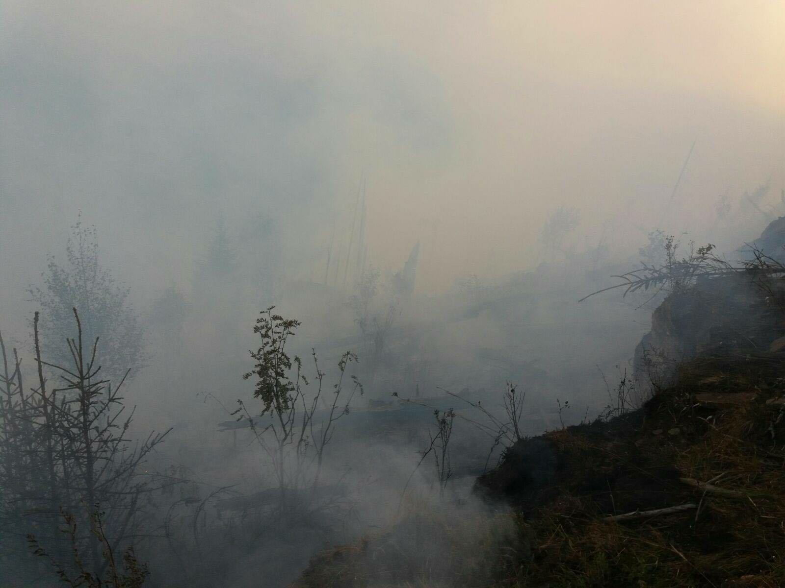 6 din 6 | Incendiu pe o plantatie de conifere in Bistrita Nasaud. Padurarii, satenii si pompierii lupta cu flacarile