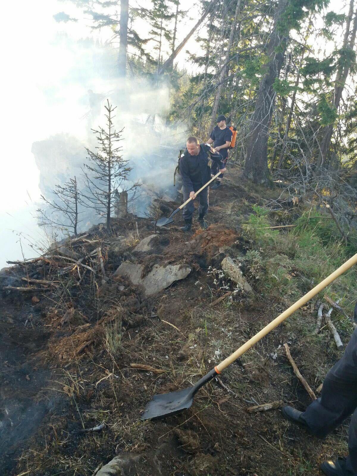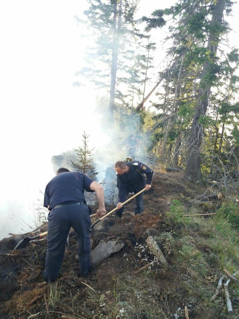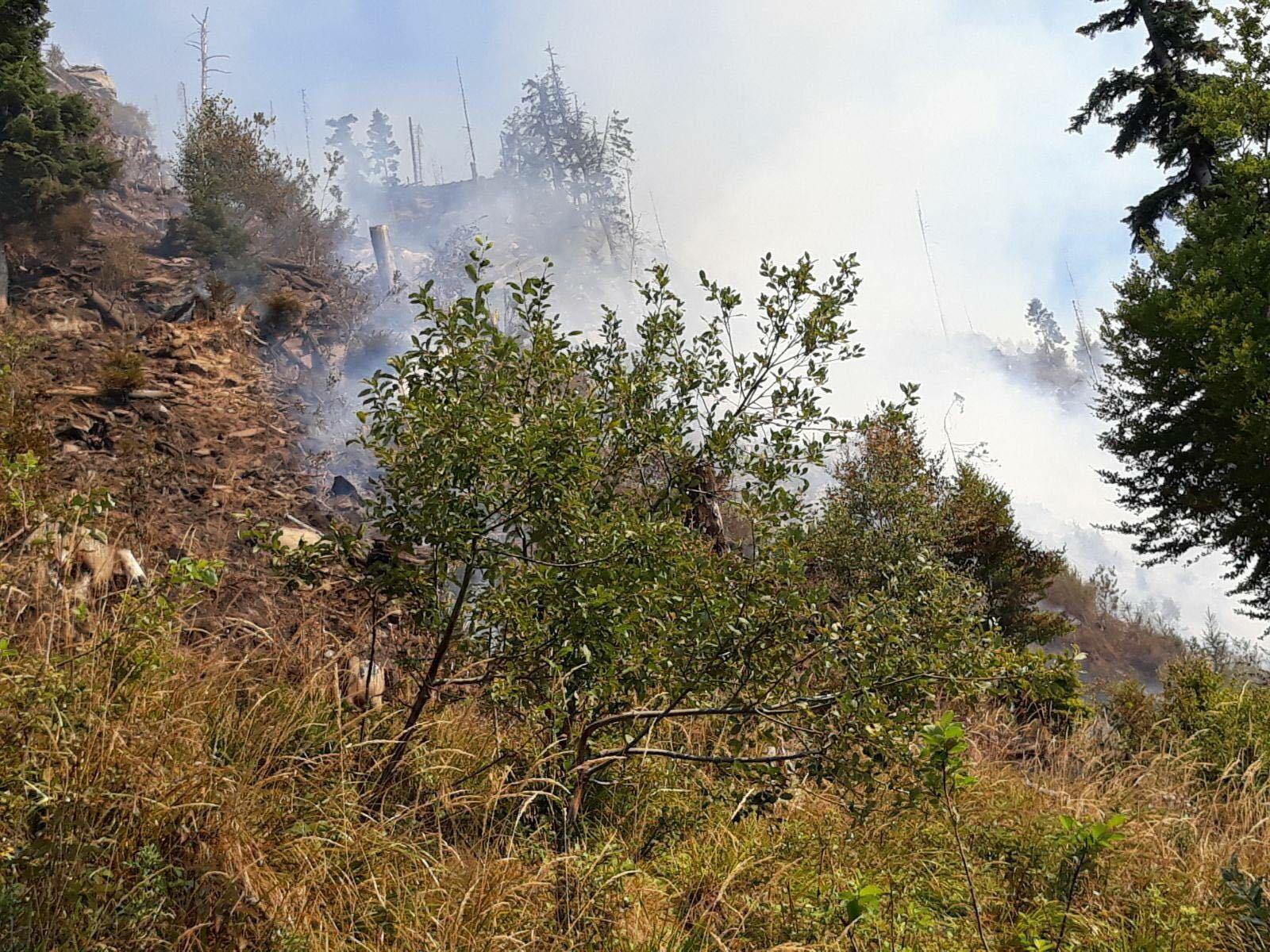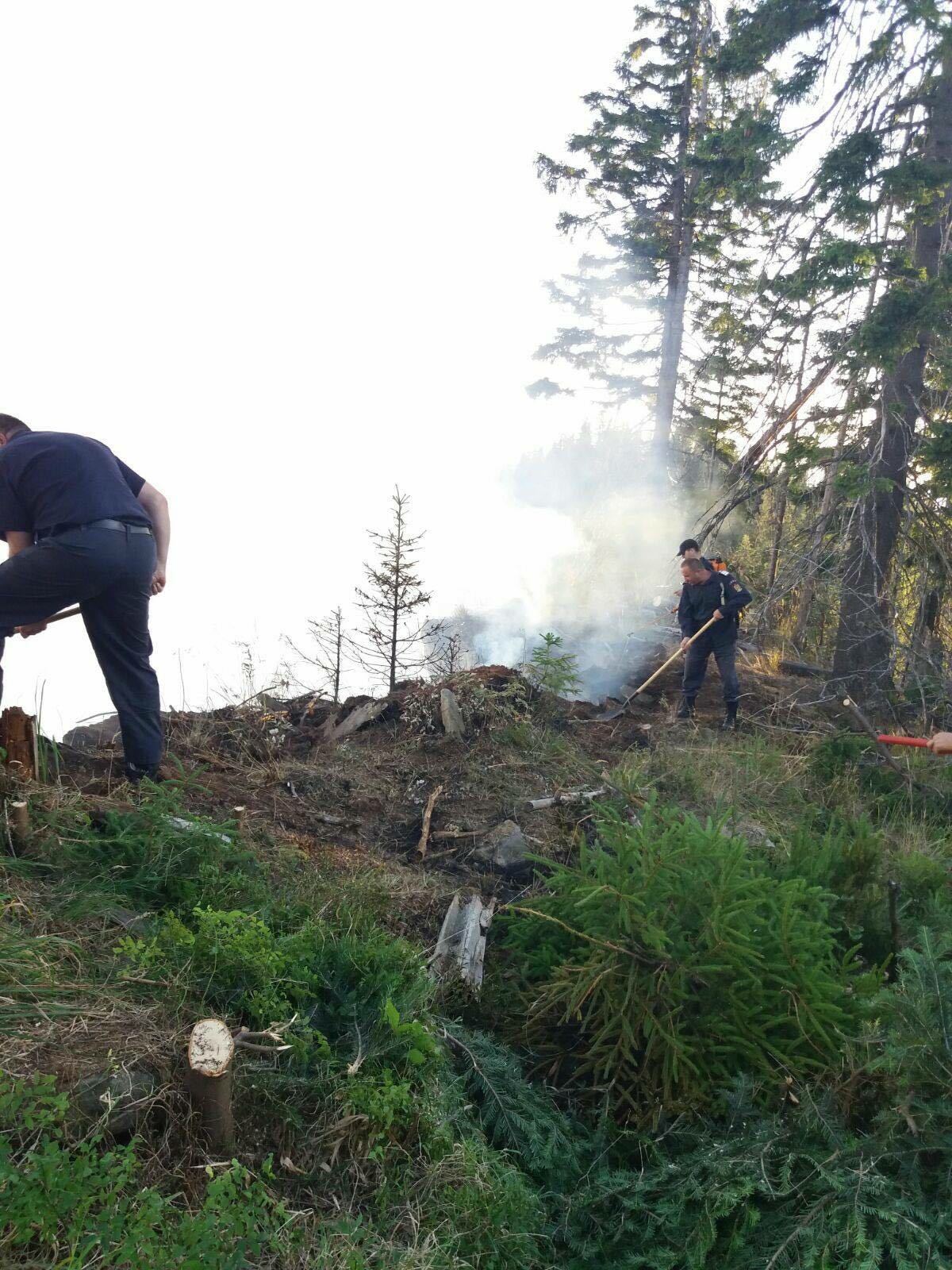 Peste 30 de persoane (pompieri militari, voluntari, personal Ocolul Silvic si cetateni) actioneaza pentru stingerea unui incendiu plantatie conifere (aprox 6- 8 ha) intr-o zona greu accesibila de munte, de pe raza localitatii Romuli.
