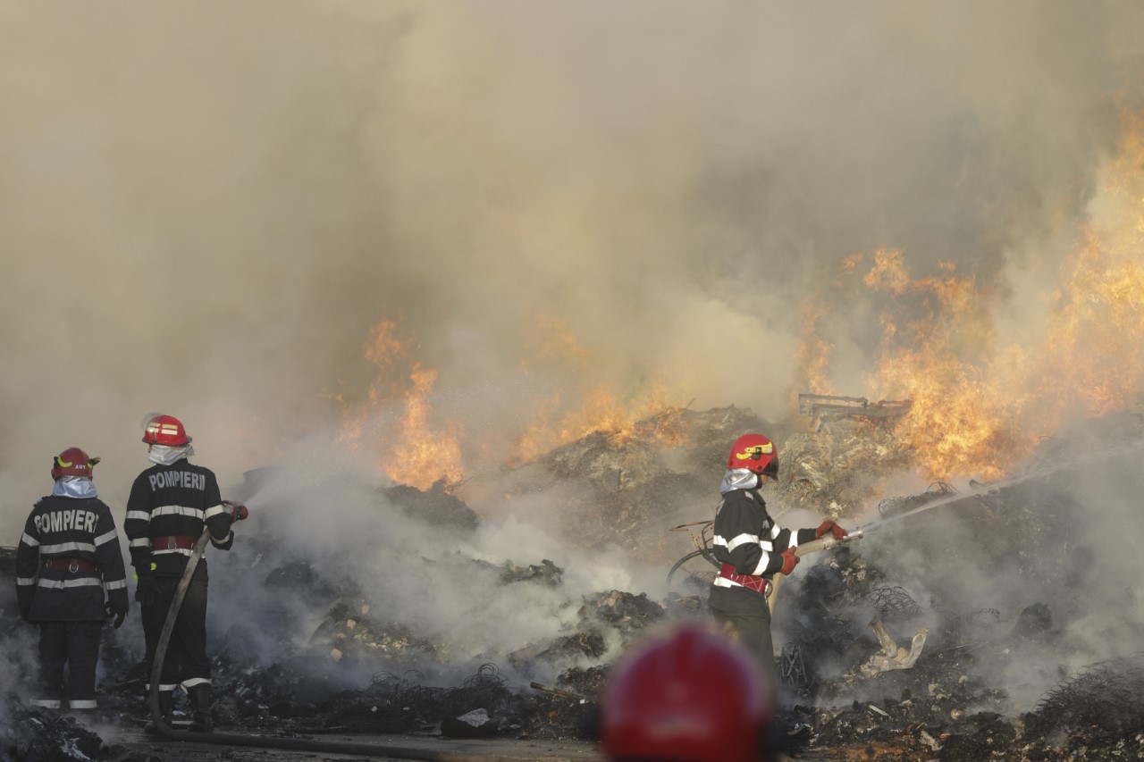 ”Incendiu produs la stive de mase plastice, gunoi menajer şi vegetaţie uscată, pe 7000 mp, în str Poiana Trestiei, localitatea Chitila, lângă fosta groapă de gunoi. Flăcările au cuprins şi un utilaj pentru sortarea deşeurilor”, anunţă ISU Bucureşti- Ilfov.