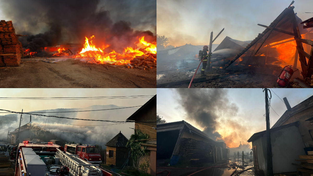 VIDEO- Incendiu puternic în Mureș la un depozit de carburant şi material lemnos. Trei victime au suferit arsuri și o persoană a decedat