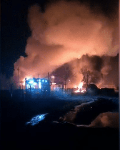 ISU Prahova a transmis imagini de la incendiul violent, izbucnit luni seară, la o societate comercială care are ca obiect de activitate fabricarea produselor din țiței din Inotești, localitatea Colceag.