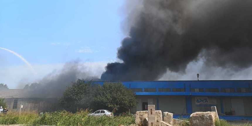 2 din 2 | Incendiu puternic la un depozit de mase plastice, suprafaţa afectată fiind de 500 de metri pătraţi. A fost emis mesaj Ro-Alert, din cauza fumului