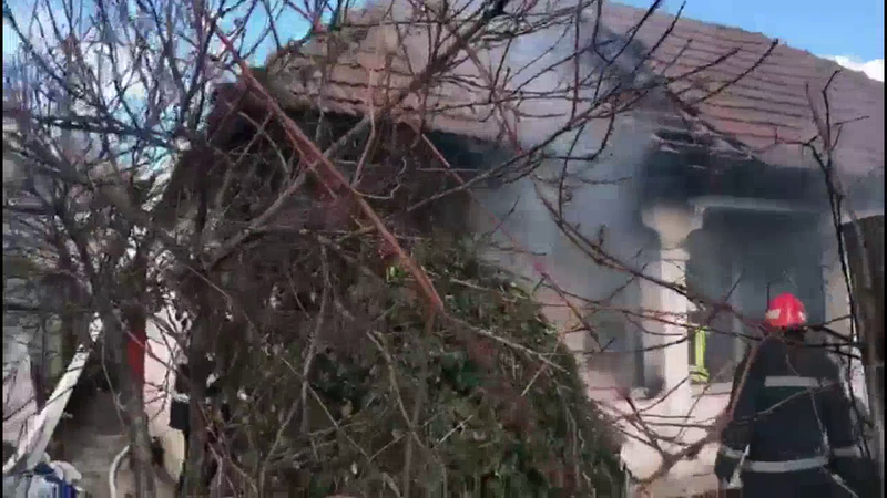 La sosirea pompierilor, incendiul se manifesta in interiorul casei in care se aflau micuții, iar intreaga locuinta era inundata cu fum dens.