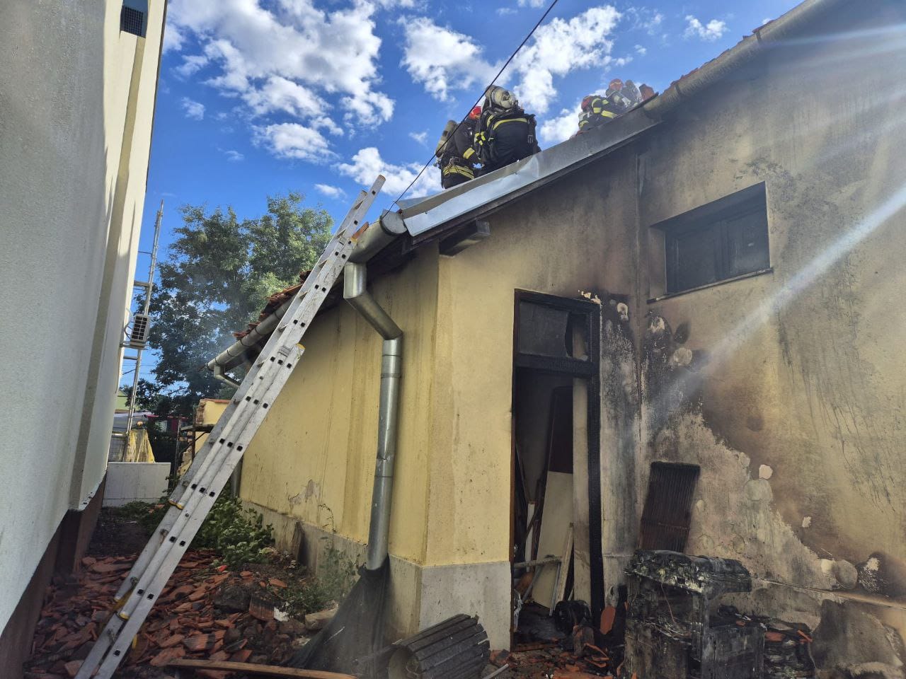 Flăcările au cuprins aproximativ 80 de metri pătrați, afectând clădirea și acoperișul anexei.