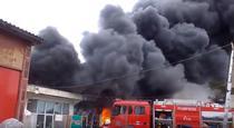 Incendiu violent la un depozit de mase plastice si vopsele din Vaslui / A fost declansat planul rosu de interventie, au venit sa ajute si pompieri din Iasi si Bacau