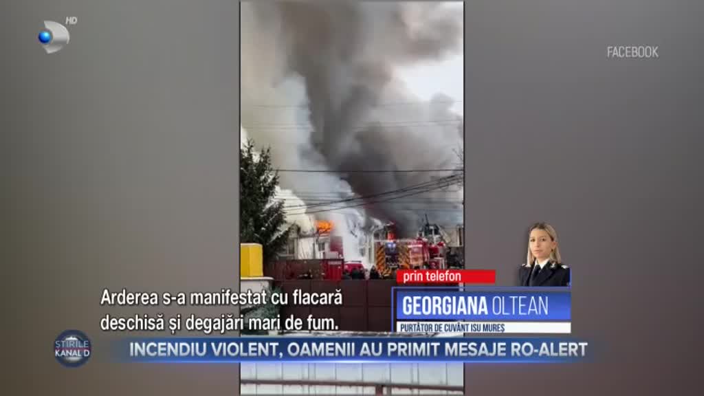 Stirea "Incendiu violent, oamenii au primit mesaj RO-Alert" difuzata in cadrul Stirilor KANAL D din 29 01 2023