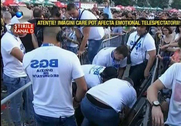 3 din 3 | Incident demn de filmele de groaza la concertul Queen de aseara! Un barbat, imobilizat de bodyguarzi, i-a muscat pe agentii de paza
