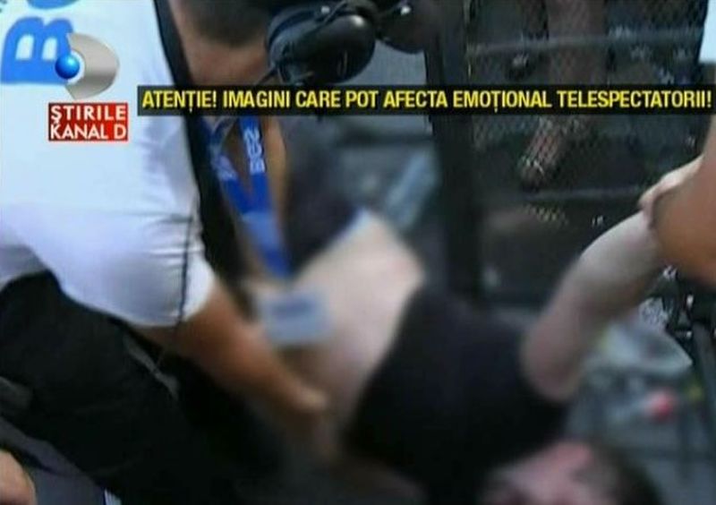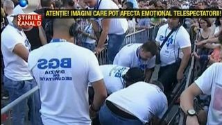 Un spectator, care fusese imobilizat de bodyguarzi din cauza comportamentului agresiv, a inceput sa ii muste de agentii de paza. Scenele sunt uluitoare! Va avertizam ca urmeaza imagini care va pot afecta emotional! ##VIDEO7991##