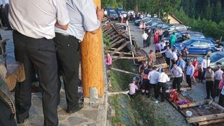 2 din 2 | Incident grav la o nunta in Durau! 14 invitati au cazut de pe terasa localului, dupa ce balustrada s-a rupt. Autoritatile au activat planul rosu de interventie