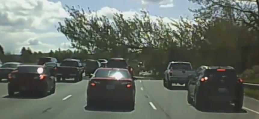 Incident grav pe o autostrada din statul american Washington. Un copac urias s-a prabusit pur si simplu, iar o camera video instalata la bordul unei masini din trafic a surprins momentul.