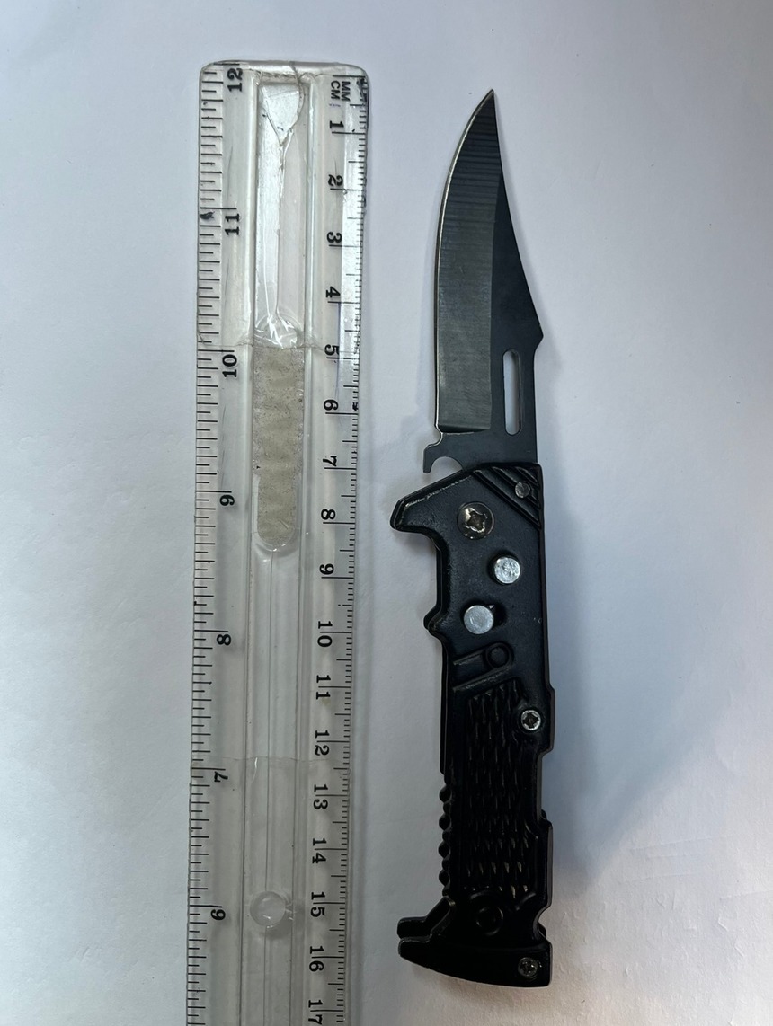 Bărbatul de 27 de ani nu declarase la intrare că are asupra sa un briceag, fapt pentru care a fost reținut de jandarmi.