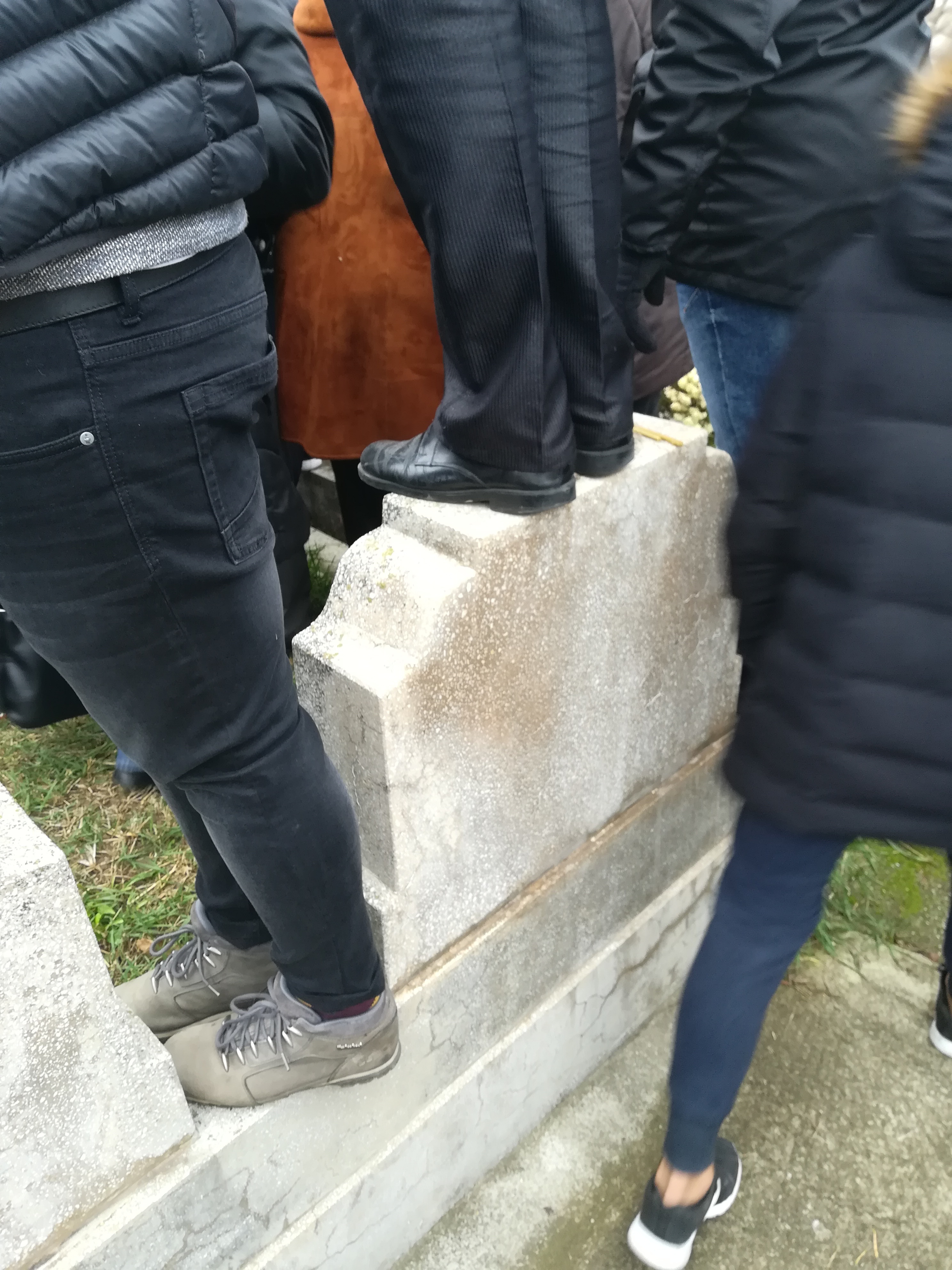 De la atata inghesuiala, chiar in timpul ultimelor rugaciuni, au avut loc si doua incidente neplacute. Un barbat a fost impins, se pare, de multime, si a cazut peste un gard, direct pe un mormant. Norocul sau a fost insa ca era pamant si nu marmura ca altfel s-ar fi accidentat grav. Barbatul nu s-a putut ridica singur, el fiind ajutat de o alta persoana care efectiv la prins de mana si l-a tras.