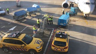 4 din 4 | Incident pe aeroportul din Amsterdam. Fuselajul unei aeronave TAROM, gaurit dupa ce a fost lovit de un utilaj