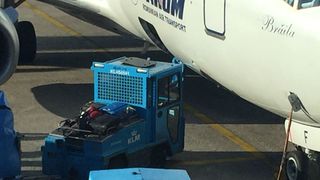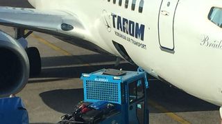 3 din 4 | Incident pe aeroportul din Amsterdam. Fuselajul unei aeronave TAROM, gaurit dupa ce a fost lovit de un utilaj