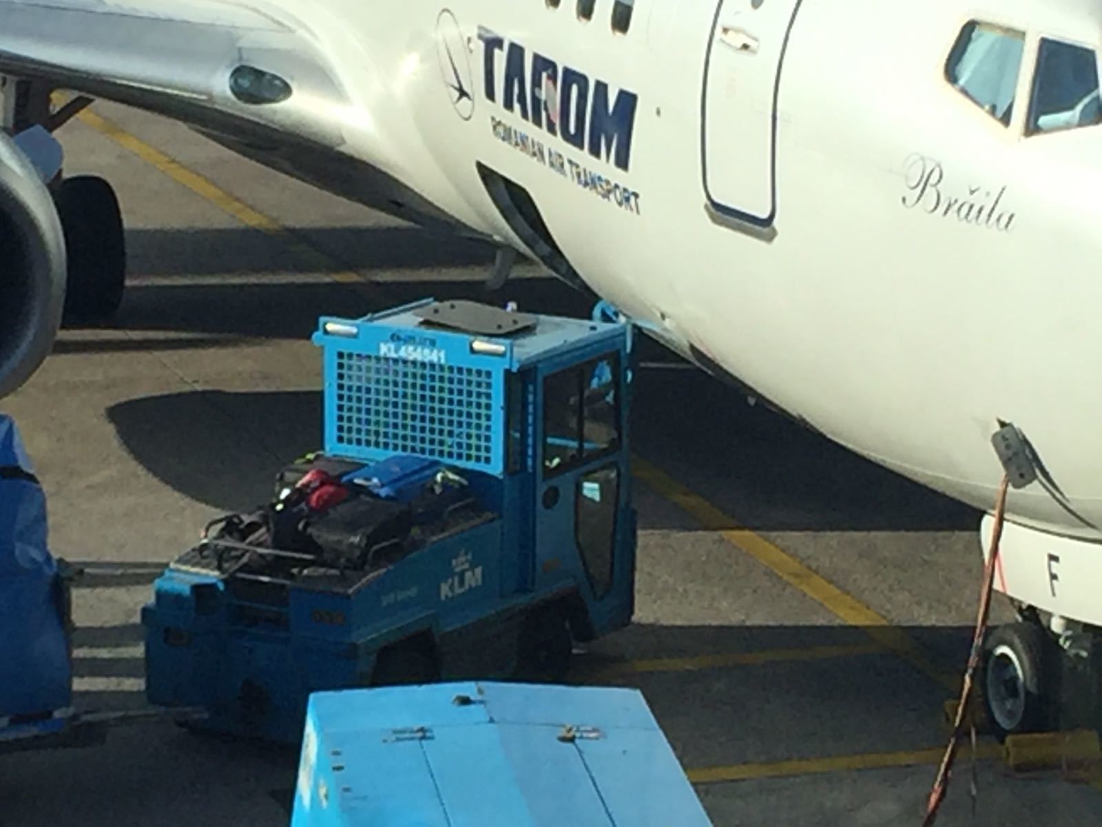 Aeronava B 737 seria 700 care trebuia sa opereze cursa ROT 364 Amsterdam - Bucuresti de vineri a fost lovita de un utilaj al agentului de handling pe aeroportul din Amsterdam, atunci cand era in faza de pregatire a cursei (incarcare bagaje).