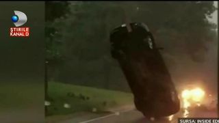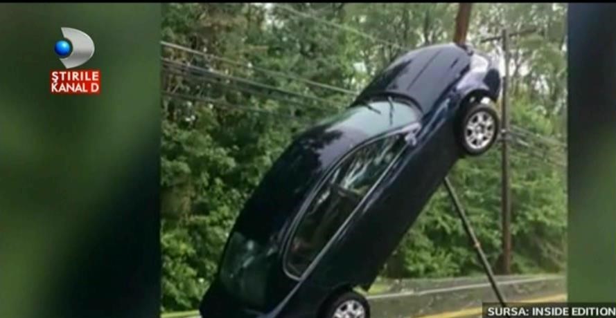 Imaginile sunt de-a dreptul incredibile! In mjlocul unei furtuni puternice masina din imagini pare ca este tinuta in aer de o forta nemaivazuta.