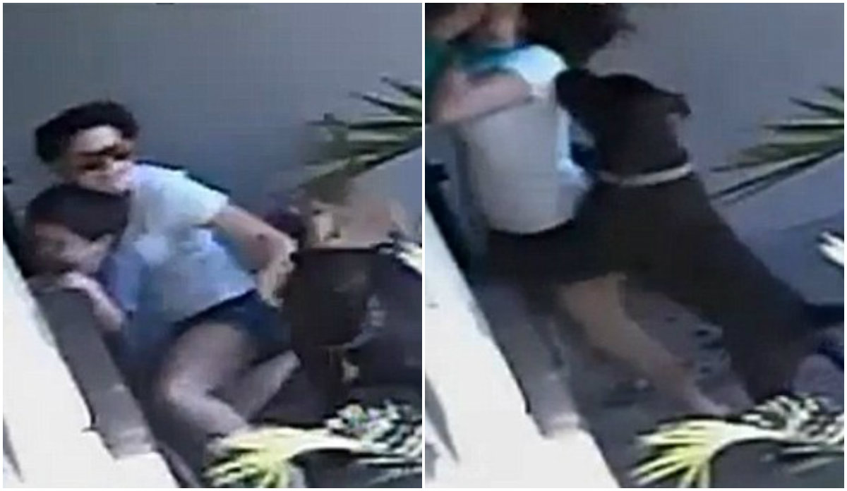 O camera de supraveghere a surprins momentul in care o mama si-a acoperit copilul de doi ani in incercarea de a-l proteja de doi caini, care i-au atacat in afara casei din California.