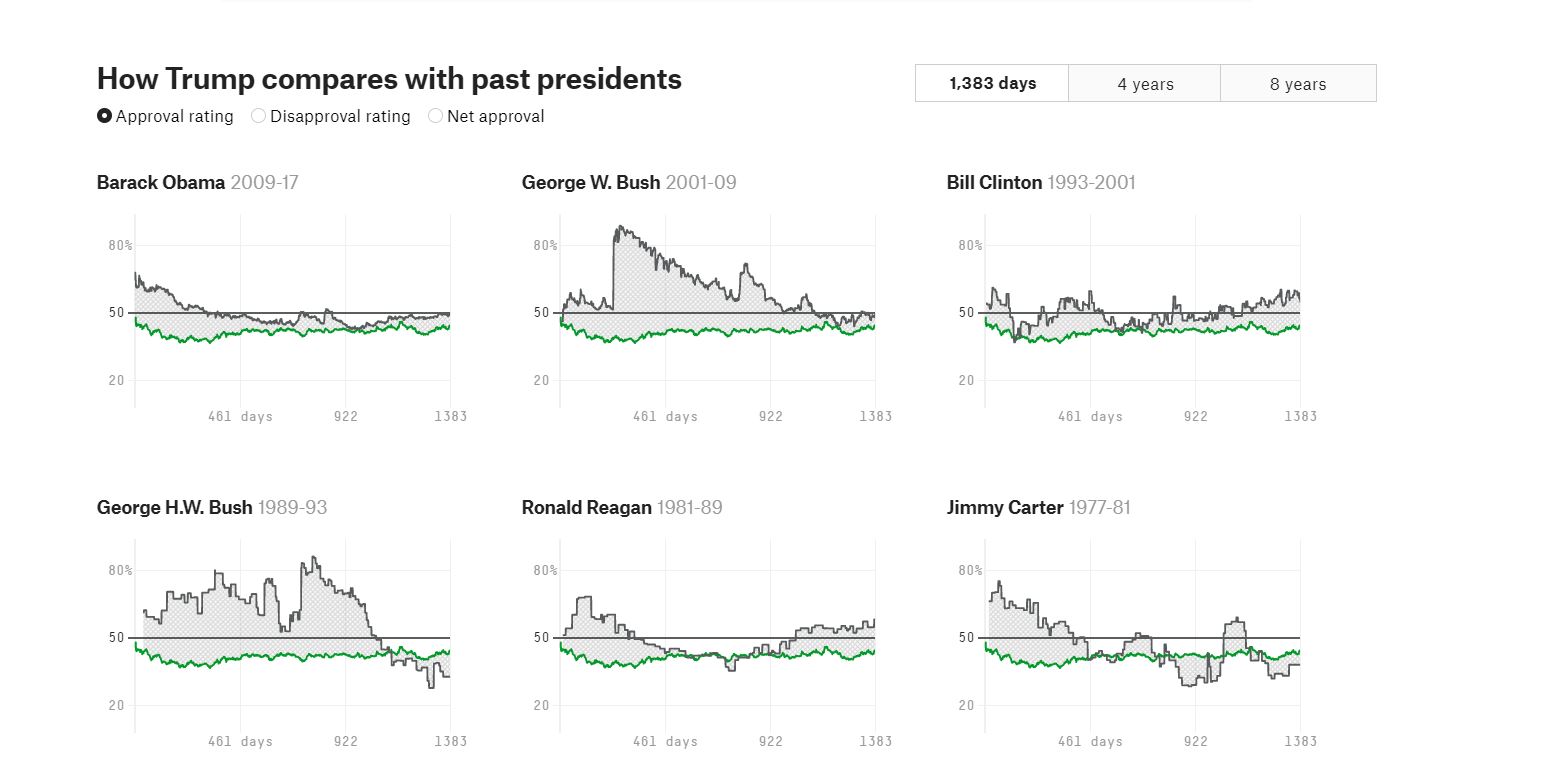 Projects FiveThirtyEight a realizat un sondaj referitor la nivelul de încredere al americanilor în Donald Trump în comparație cu alți foști președinți din SUA. Rezultatele sondajului sunt uluitoare.