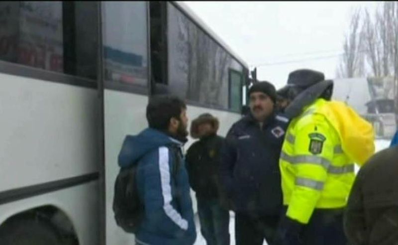 In Buzau, drumul european 85 a fost inchis din cauza urgiei, asa ca autocarul care trebuia sa-i duca pe muncitori acasa....a tras pe dreapta. Utilajele de deszapezire le-au deschis drumurile doar ambulantelor.