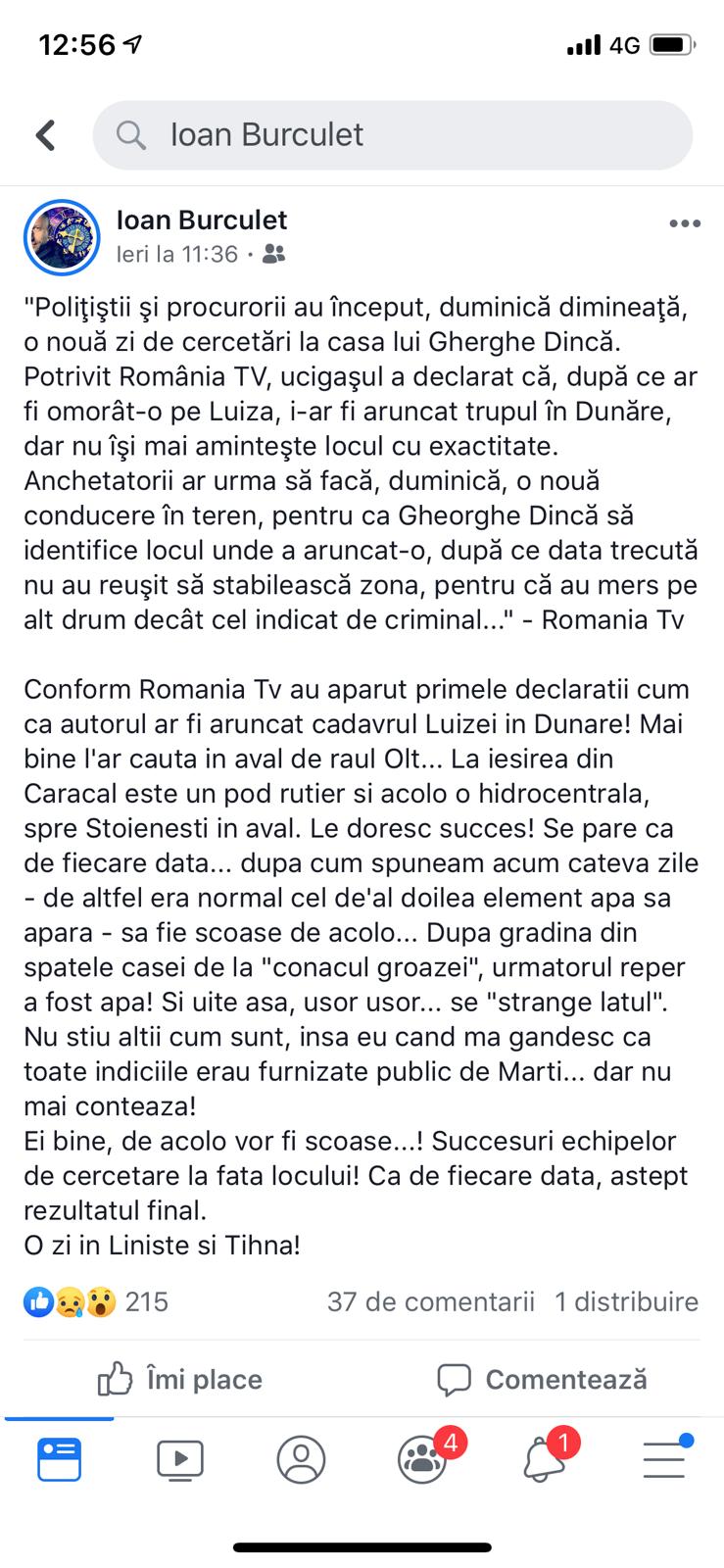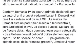 Astrologul Ioan Burculeț pomenește și el exact despre un pod, însă, spune el, acolo ar putea fi abandonată Luiza. ”...au apărut primele declarații cum că autorul ar fi aruncat cadavrul Luizei în Dunăre. Mai bine l-ar căuta în aval de râul Olt... La ieșirea din Caracal este un pod rutier și acolo e o hidrocentrală spre Stoenești, în aval. Le doresc succes(...). După grădina din spatele casei de la ”conacul groazei”, următorul reper a fost apa!”, a scris Ioan Burculeț pe contul lui de socializare.