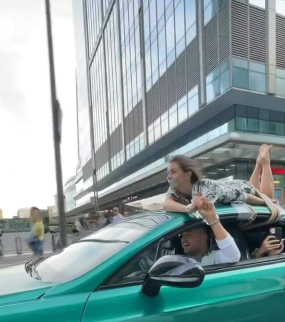 Un influencer celebru și-a legat iubita cu frânghia de plafonul mașinii. El s-a plimbat apoi pe străzile din Rusia cu ea. Oamenii legii au luat măsuri imediat.