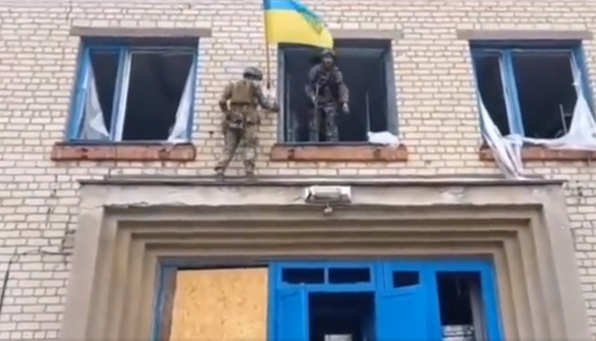 Soldati ucraini davanti al municipio di Novoselovka, a nord ovest di Liman. pic.twitter.com/icDUkCFpVZ