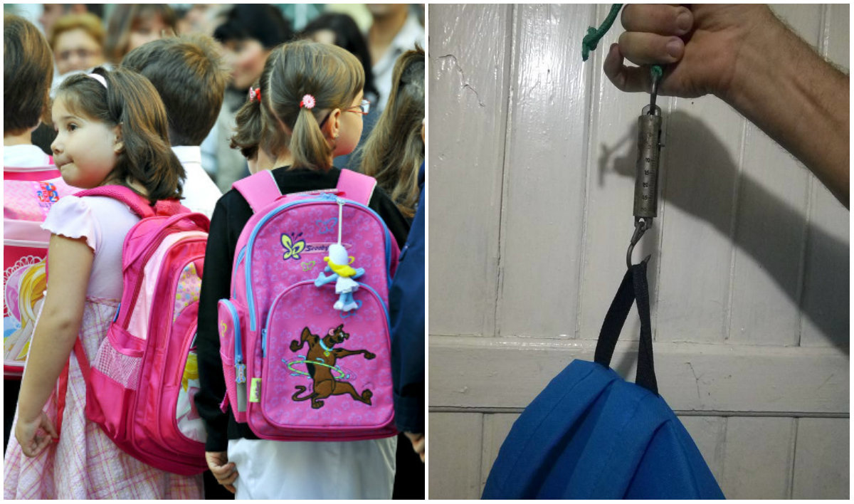 2 din 2 | Inspectoratul Scolar Bucuresti anunta ca va face verificari dupa ce o femeie a reclamat ca ghiozdanul fiului ei cantareste 25% din greutatea corpului copilului