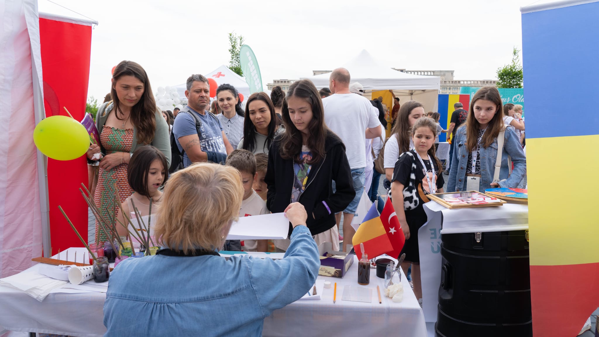 La standul Institutului Yunus Emre copiii au avut ocazia să participe la atelierul de limbă turcă, la jocuri în limba turcă, la concursuri de cunoștinte, iar la ateliere de pictură pe apă și de caligrafie au putut să își creeze propriile opere.
