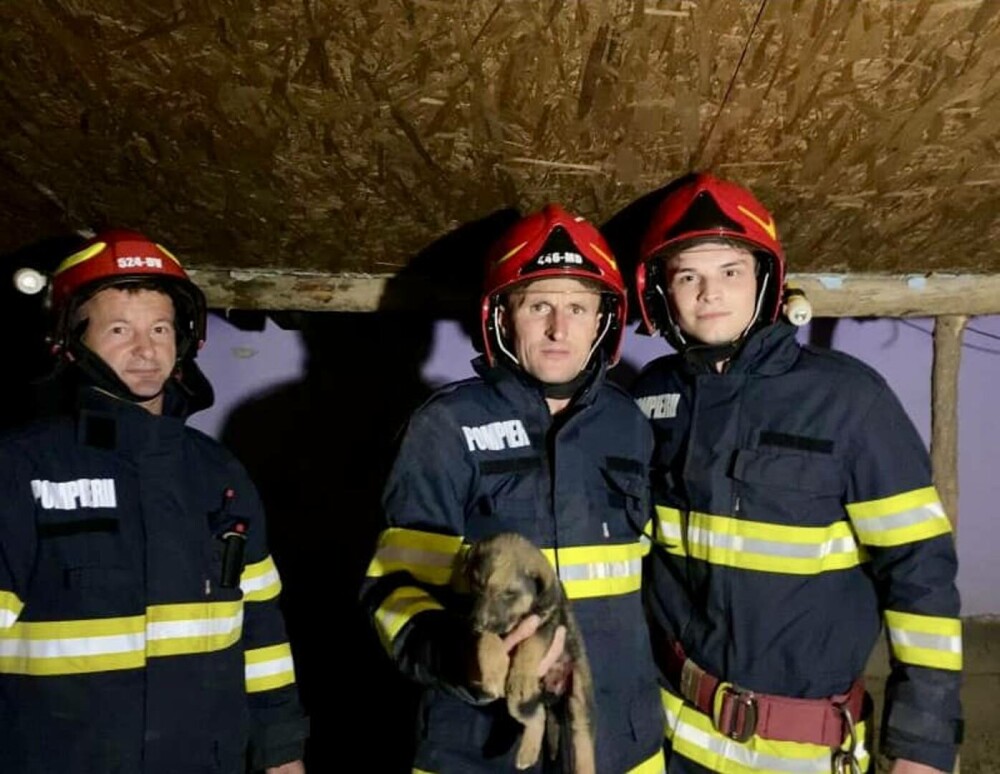 Pompierii au intervenit pentru salvarea unui cățel de aproximativ trei luni. Acesta se juca în curte, moment în care a căzut în canalul săpat special pentru o fântână de circa 4 metri adâncime, din localitatea Saroș pe Târnave.