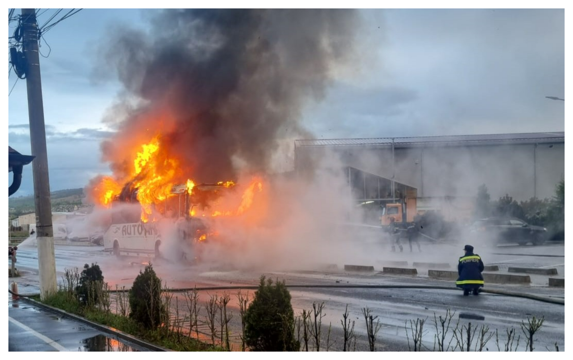 1 din 3 | Imagine cu autobuzul în flăcări.