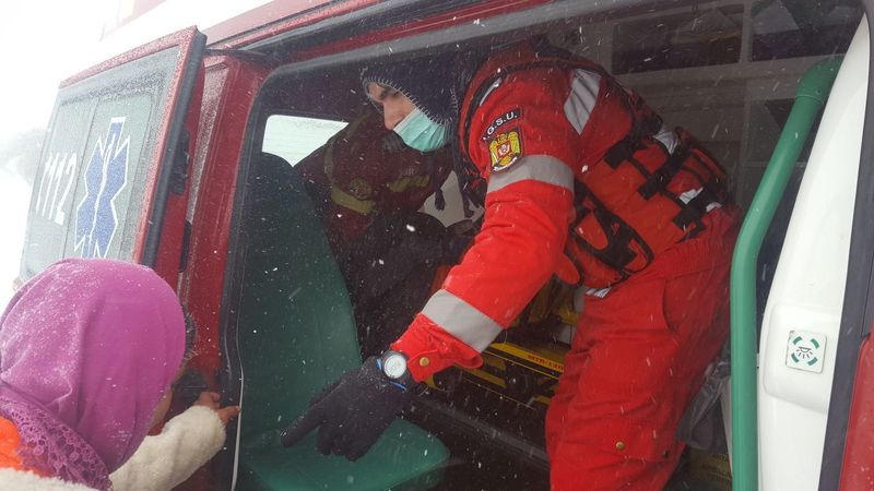 Din cauza unui autoturism abandonat (care bloca drumul de acces), membrii echipajului au inaintat pe jos spre locul indicat de parintii micutului, l-au preluat si l-au transportat, in brate, pana la ambulanta.