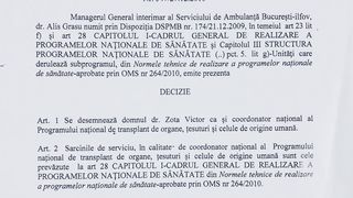 Nu știu cine a influențat-o și cum a ajuns la concluzia că eu distrug sau încerc să distrug sistemul de transplant, dar cert este că nimic din ceea ce propusesem eu și cu care fusese inițial de acord nu s-a implementat în sistem și în agenție. Poate că dacă încerca și demara măcar o parte din propunerile pe care le-am făcut, lucrurile acum ar fi stat mult mai bine. Și propunerile mele se refereau la sistemul de organizare, plata personalului care este implicat în transplant, decontarea cheltuielilor pentru activitatea de transplant și urmărirea pacienților posttransplantați. Deci întregul palier, bineînțeles împreună cu completarea și dezvoltarea Registrului Național de Transplant.