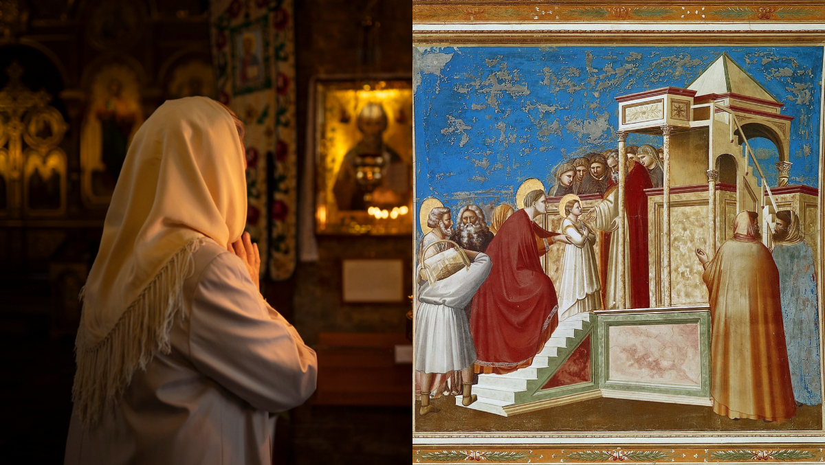 1 din 5 | Pe data de 21 noiembrie 2023, cu prilejul sărbătorii Intrarea în Biserică a Maicii Domnului, este comemorată aducerea Fecioarei Maria la Templu.