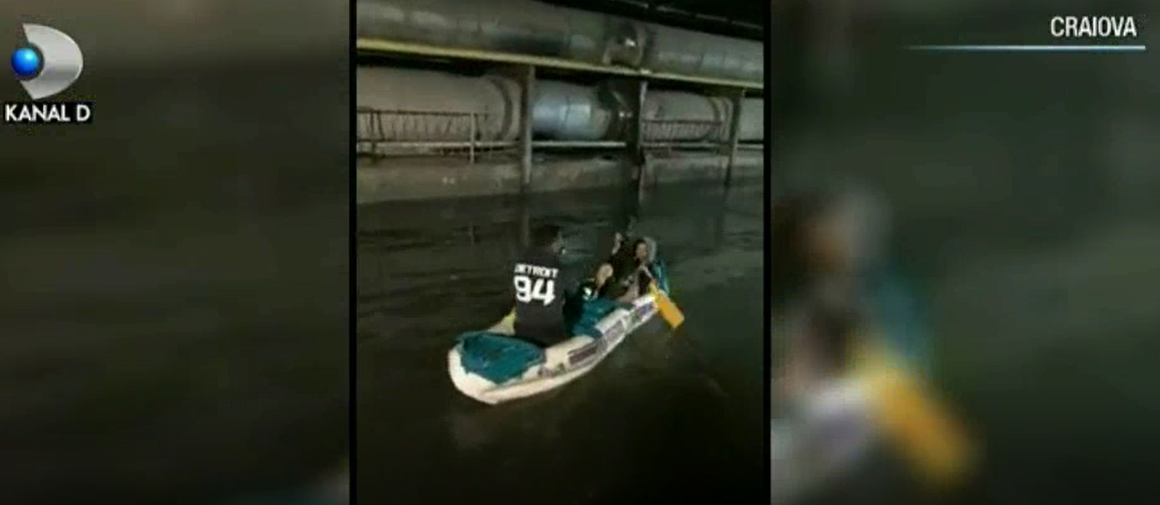 Nici inundatiile nu mai sunt ce au fost, pentru cativa craioveni. Daca n-au avut parte de distractie si-au scos barca din casa pentru o plimbare nocturna pe strazile cuprinse de suvoaie.