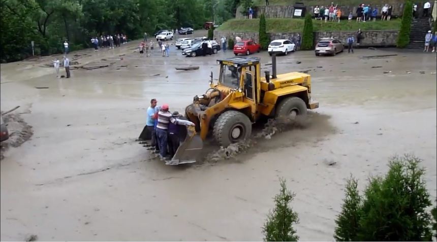 Inundatii puternice au loc si in comuna Barsana, in zona in care se afla si Manastirea Barsana, judetul Maramures, oamenii fiind evacuati din calea viiturii cu buldozerul.