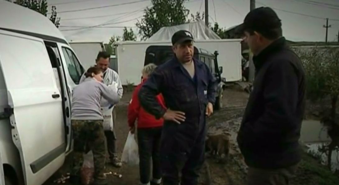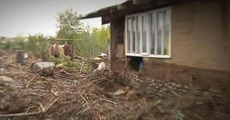 Cu lacrimi in ochi. Asa a primit ajutoarele acest domn din comuna Pechea. Viitura i-a luat aproape tot. Cateva suflete nevinovate au scapat, totusi. S-au adapostit pe prispa casei.