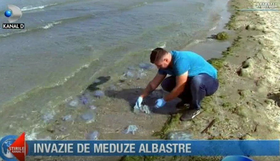 Sunt din ce in ce mai multe meduze albastre pe litoralul romanesc. Daca acum 2 saptamani, astfel de exemplare au aparut doar la mal, acum inotatorii au surprins imagini incredibile cu milioane de vietuitoare colorate, in largul marii. Biologii spun ca o astfel de invazie este neobisnuita.