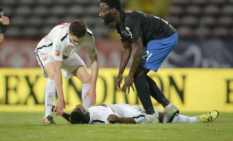 Jucătorul camerunez al echipei FC Dinamo, Patrick Ekeng, 26 de ani, s-a prăbuşit pe teren în minutul 71 al meciului Dinamo-Viitorul, care a avut loc vineri pe stadionul Ştefan cel Mare.